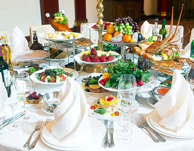 Наличие собственной банкетной службы и производства позволяет гарантировать широкий ассортимент и высокий уровень блюд вне зависимости от масштаба мероприятия.